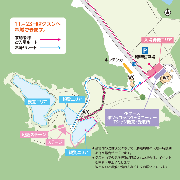 11月23日(日)に開催予定の「第37回 全島獅子舞フェスティバル」および「勝連城スカイランタン宵祭り2025」へお越しいただく皆さまへ、すべての方が安全かつ快適にイベントをお楽しみいただけるよう、以下の事項についてご理解とご協力をお願いいたします。